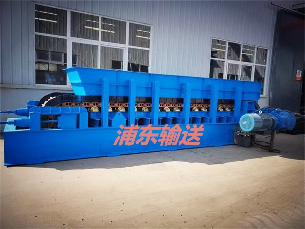 重型鏈板給料機常用用于粗破供料及中轉倉倉底出料。該機能定量的將物料向大型破碎機均勻供料,采用交流變頻調速的方式控制其生產能力,應用了大速比、大扭距并具有機械過載保護功能的硬齒面齒輪減速器直聯傳動與無鍵連接等**技術。牽引鏈為高強度履帶鏈條, 其特點是節距誤差小運動平穩,強度高,拉力大無需潤滑。