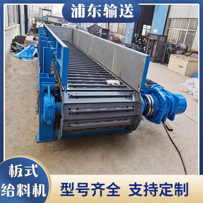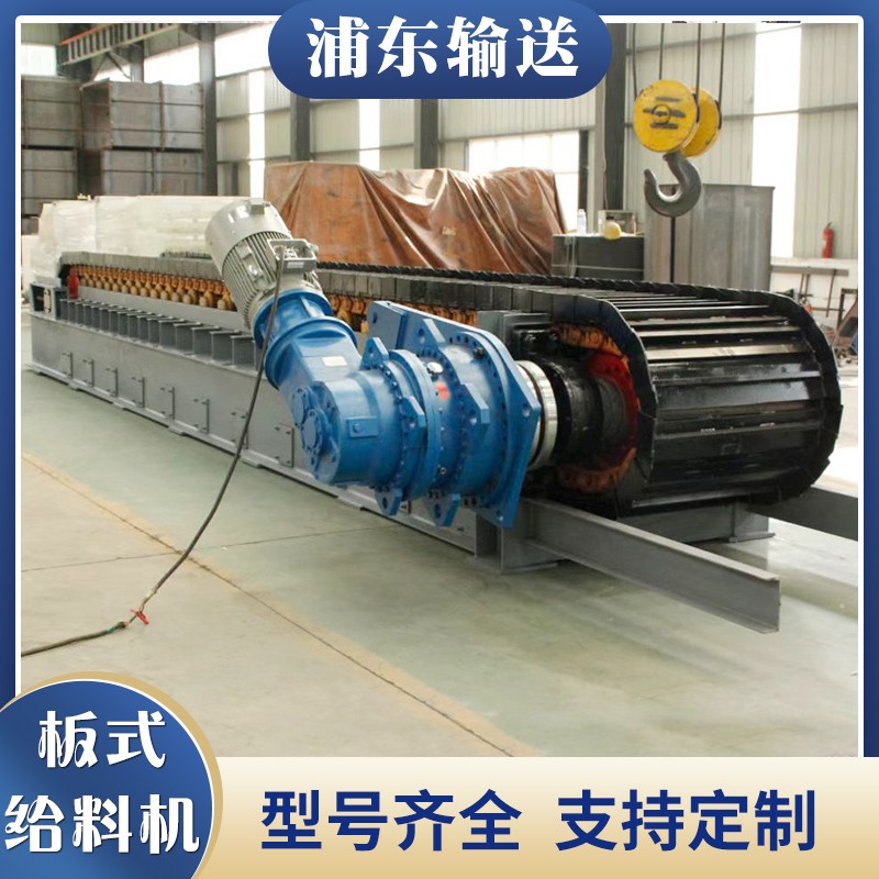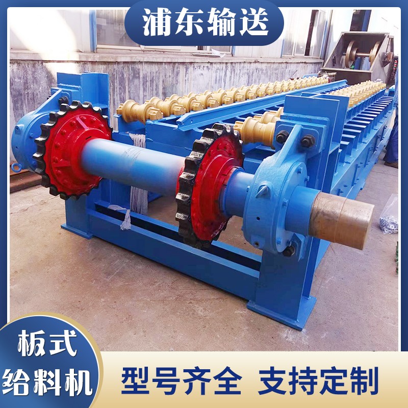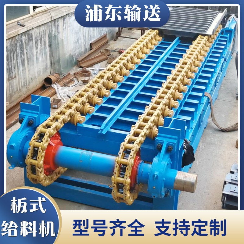 。重型板式給料機(jī)可水平安裝,也可傾斜安裝,*大傾角20° 二、特點(diǎn) 重型板式給料機(jī)拖曳鏈條采用**廠家生產(chǎn)的標(biāo)準(zhǔn)干式履帶鏈條,無(wú)需潤(rùn)滑,抗拉強(qiáng)度高安裝維護(hù)方便。如圖: 重型板式給料機(jī)所有鏈連接部位均采用脹套和鎖盤連接,不損傷軸徑,減少應(yīng)力集中,方便拆裝。 重型鏈板式給料機(jī)鏈板為沖壓焊接結(jié)構(gòu),鏈板之間弧形搭接,工作時(shí)不漏料,鏈板上下加強(qiáng),具有更大的承載能力。 重型鏈板式給料機(jī)驅(qū)動(dòng)裝置采用懸掛單點(diǎn)浮動(dòng)支撐方式,齒徑吻合不受基礎(chǔ)精度的影響,可*大限度減少板喂機(jī)的徑向安裝尺寸板式給料機(jī)技術(shù)參數(shù):