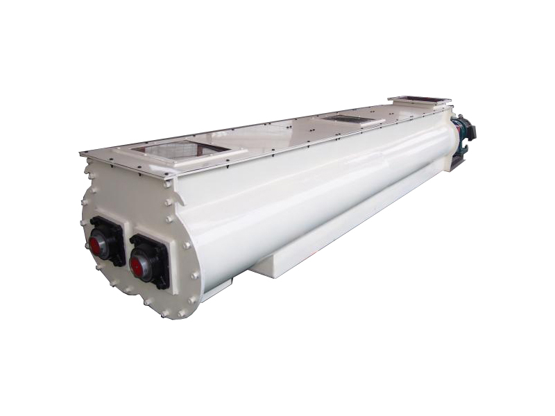 ZJ型雙軸加濕攪拌機(jī)利用兩根呈對(duì)稱狀的螺旋軸的同步旋轉(zhuǎn),在輸送干灰等粉狀物料的同時(shí)加水?dāng)嚢瑁鶆蚣訚窀苫曳蹱钗锪希_(dá)到使加濕物料不冒干灰又不會(huì)滲出水滴的目的從而便于加濕灰裝車運(yùn)輸或轉(zhuǎn)入其它輸送設(shè)備。