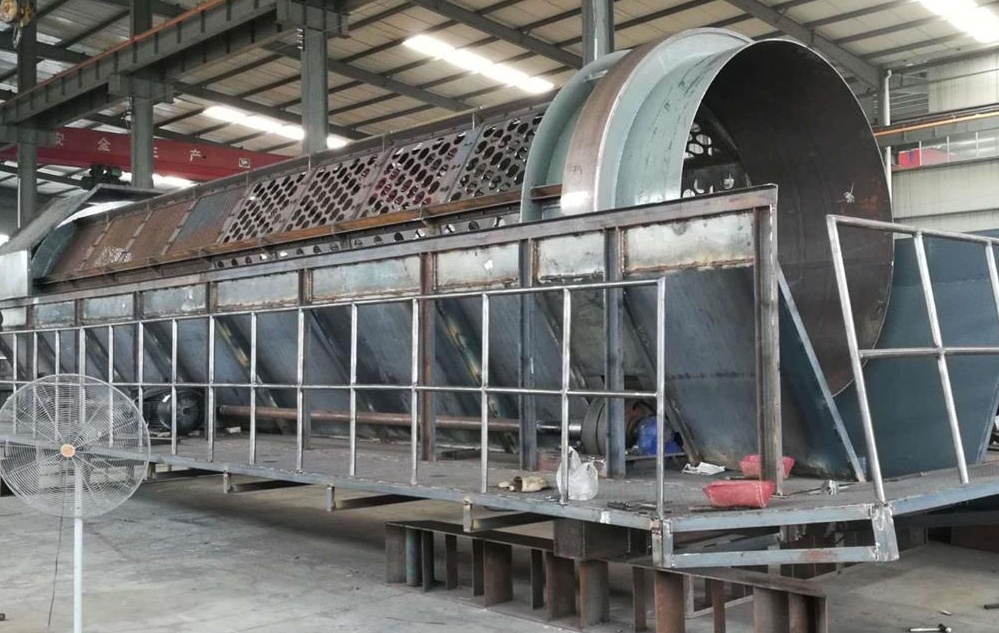 YHS型圓筒回轉篩主體結構是篩分筒,它是由若干個圓型狀篩網組成,整體與地平面成傾斜狀態,外部被密封隔離罩所密封,以防止污染環境。通過變速減速系統使篩分筒在**轉速下旋轉,物料自上而下通過篩分筒得到分離,細料從篩分筒前端下部排出,粗料從篩分